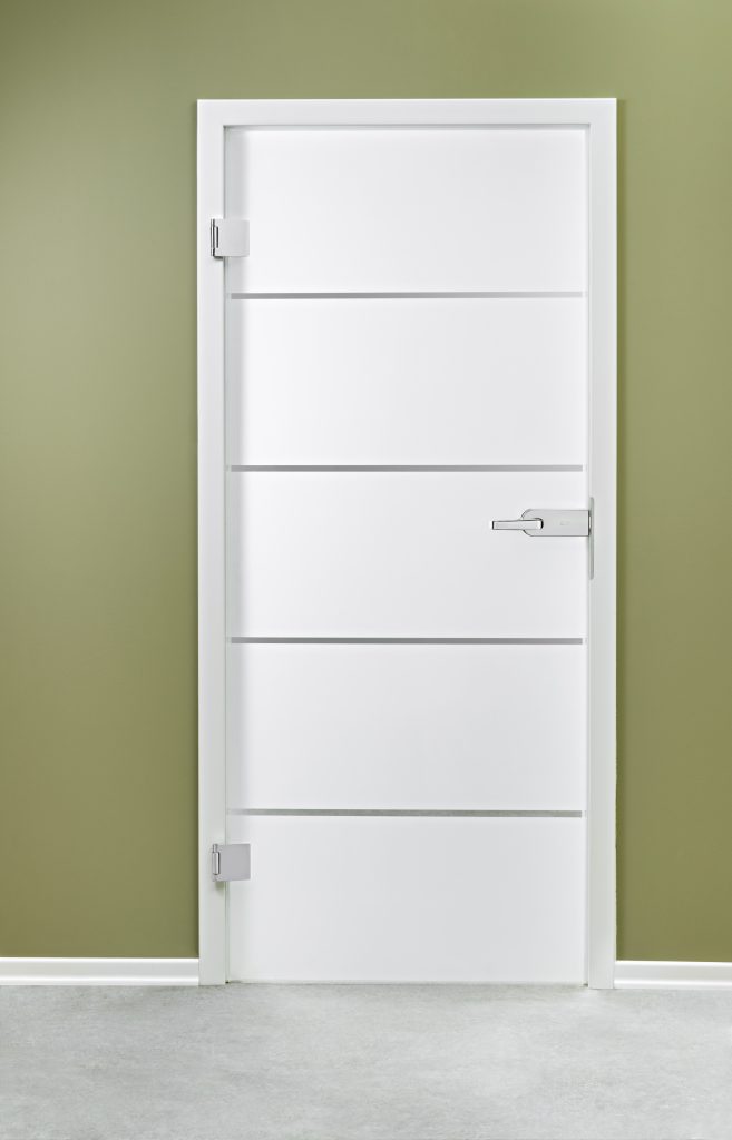 Dadurch, dass die Glastür „Streifen“ auch eine transparentere Optik vor weißen Wänden hat, als zum Beispiel Glastüren, die aus Grünglas bestehen, lässt sie sich besonders gut und flexibel für die Raumgestaltung nutzen.